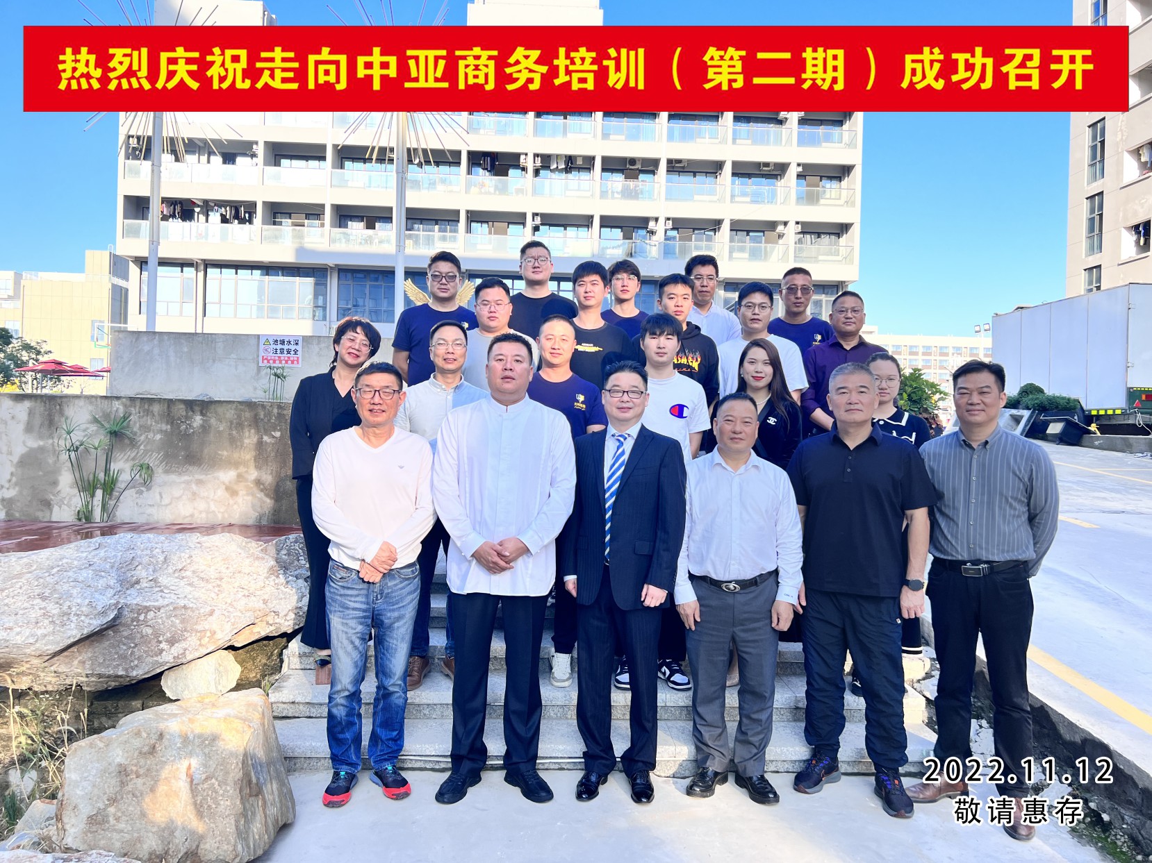 新形势,新征程 ,为赋能商务,全面提升企业走向中亚商务人员综合能力,11月11-12日, 由大玮检测科技有限公司主办,温州市一带一路企业发展联合会、温州市团结进步促进会协办的《走向中亚商务培训会》在大玮科技园隆重召开。经过两天一夜的培训和严格的考核,10名学员顺利结业。出征中亚的号角就此吹响,周众禾、曾繁柯两位优秀学员,率先报名进驻新疆,勇当走向中亚的“开路先锋”!!